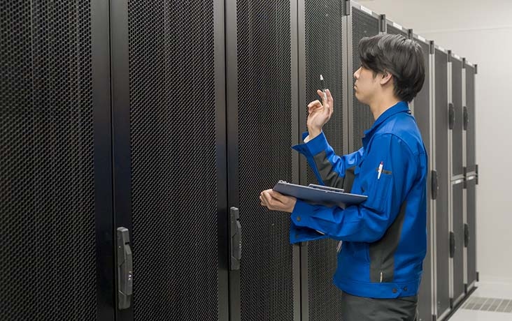 耐震設備や入退室管理、監視カメラなど物理セキュリティを備えた施設環境に加え、バックアップや災害対策構成を支援し、安全性の高いIT運用を実現します。