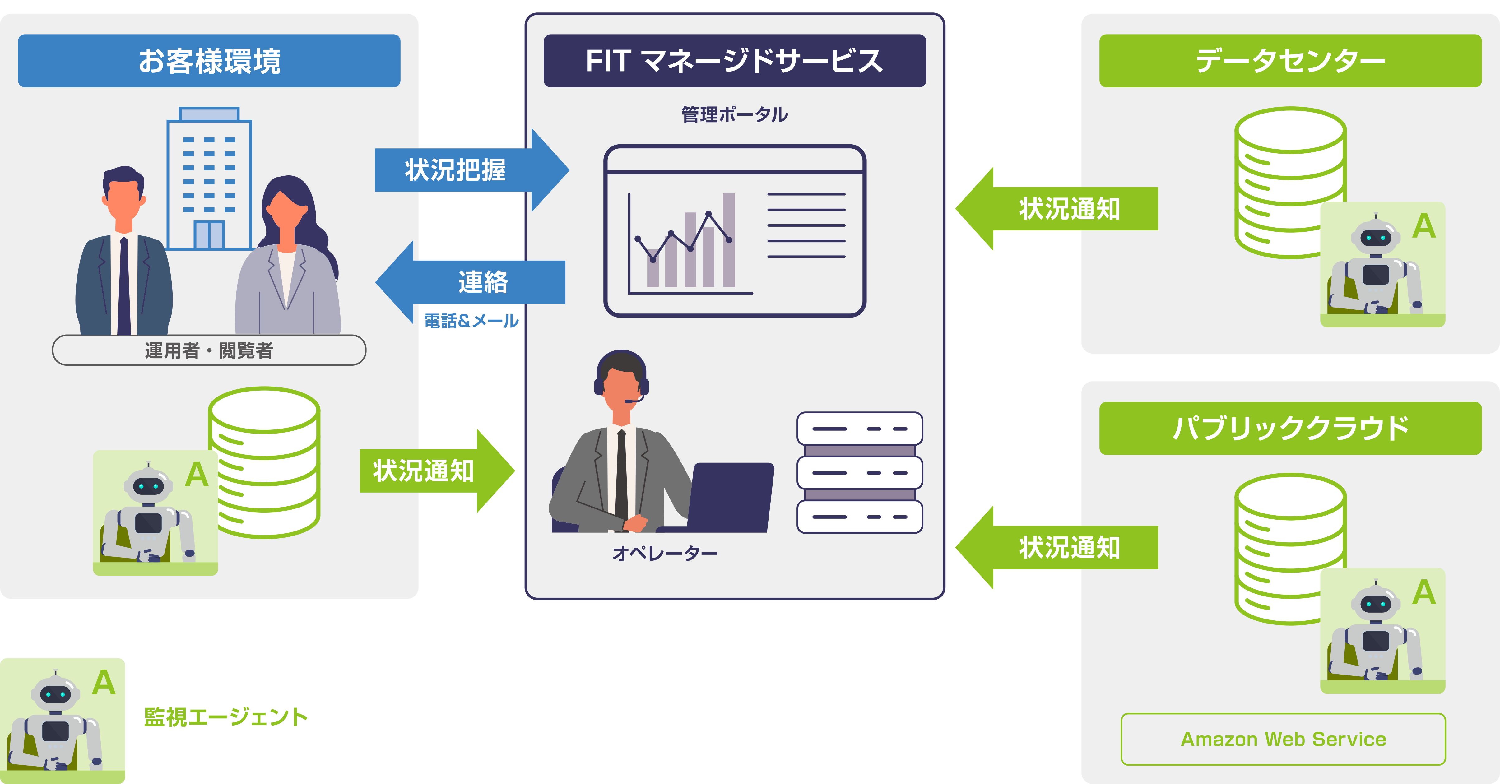 FITマネージドサービス(監視サービス)は、ネットワーク疎通が可能なあらゆるノードを対象に、