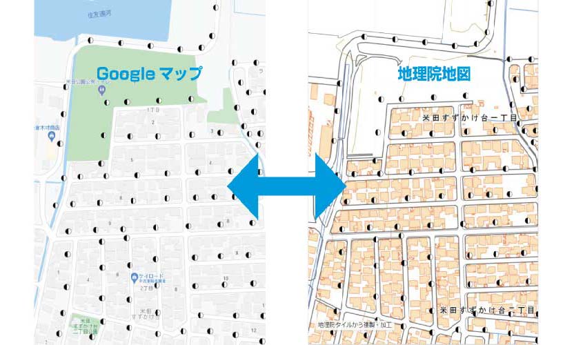 表示する地図は、Googleマップ、または、地理院地図から選択ができます。印刷機能は地理院地図を使用します。
