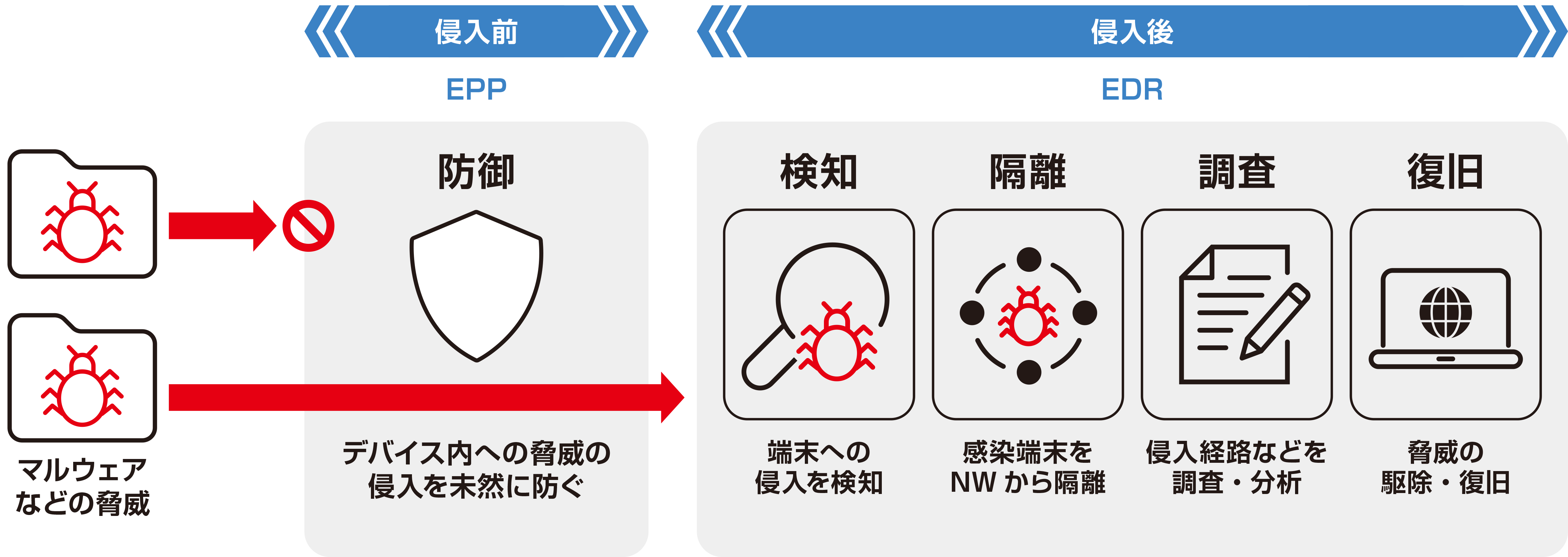 CrowdStrike・Cybereason・Defender for Endpointなど主要EDRの選定・設計から構築まで支援。